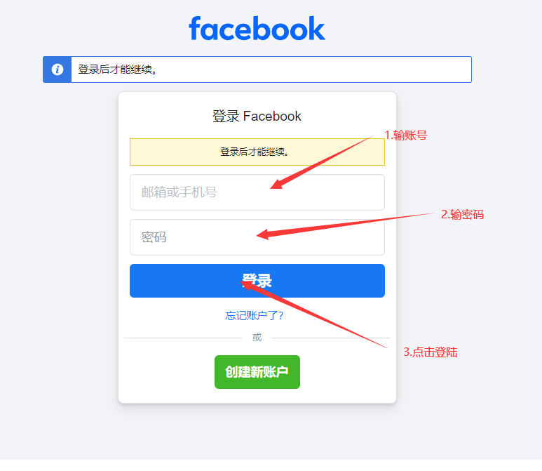 步骤 1:登录 Facebook 账户